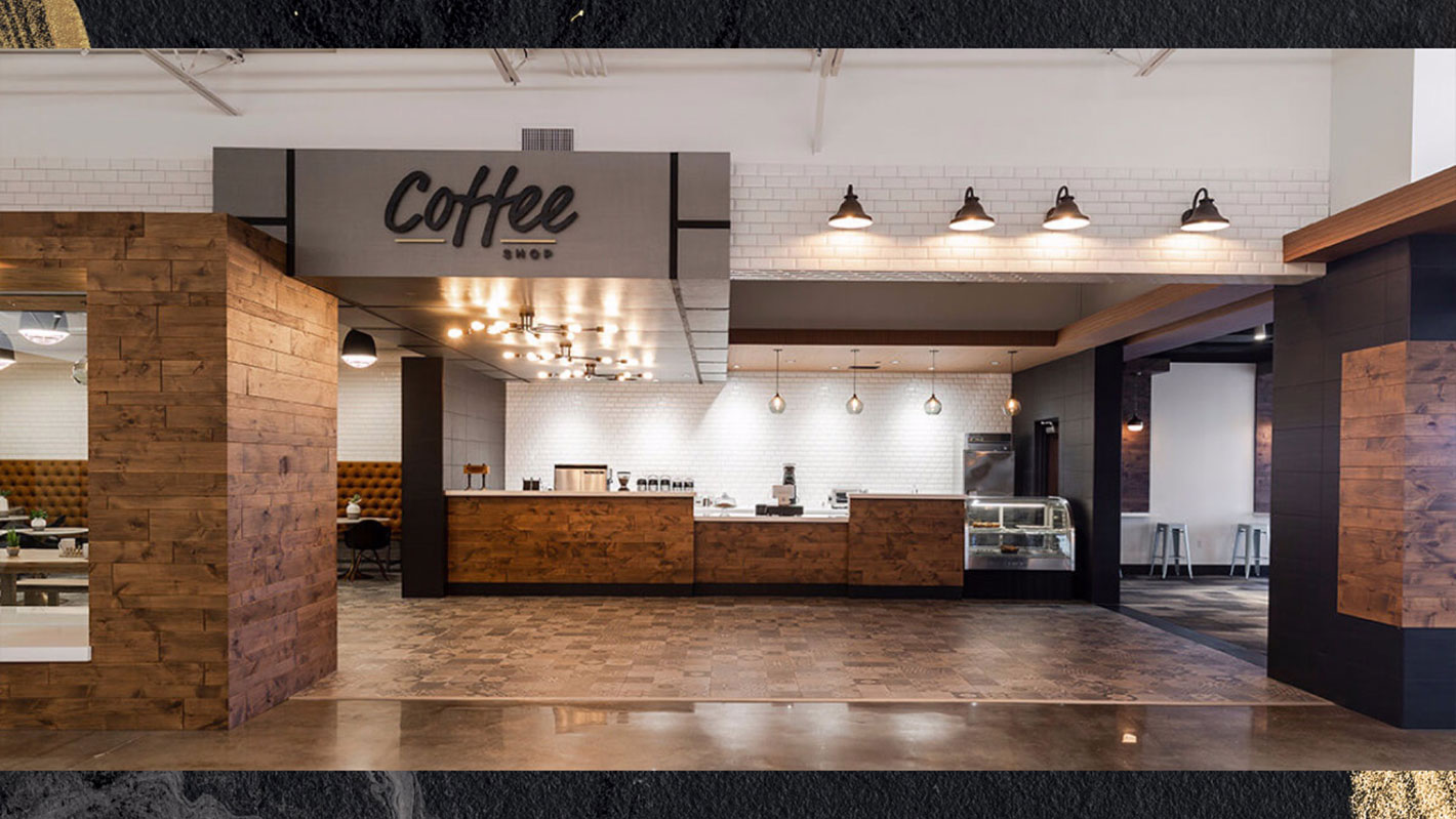 A spacious lobby with a cafe designed for people to gather and build relationships